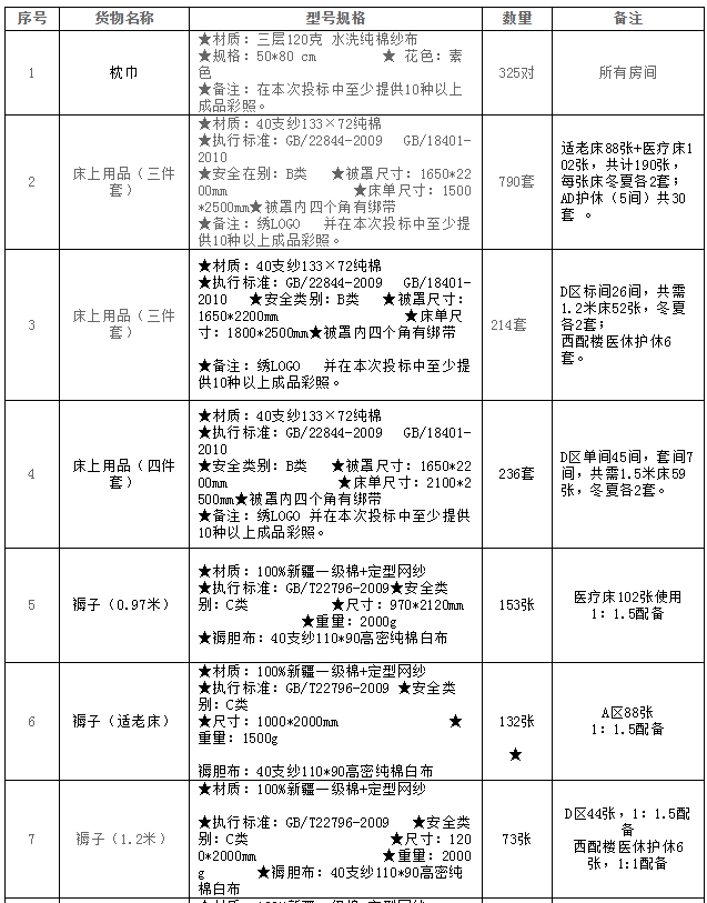 項目名稱:烏蘭美健康養(yǎng)老提升項目床上用品類采購